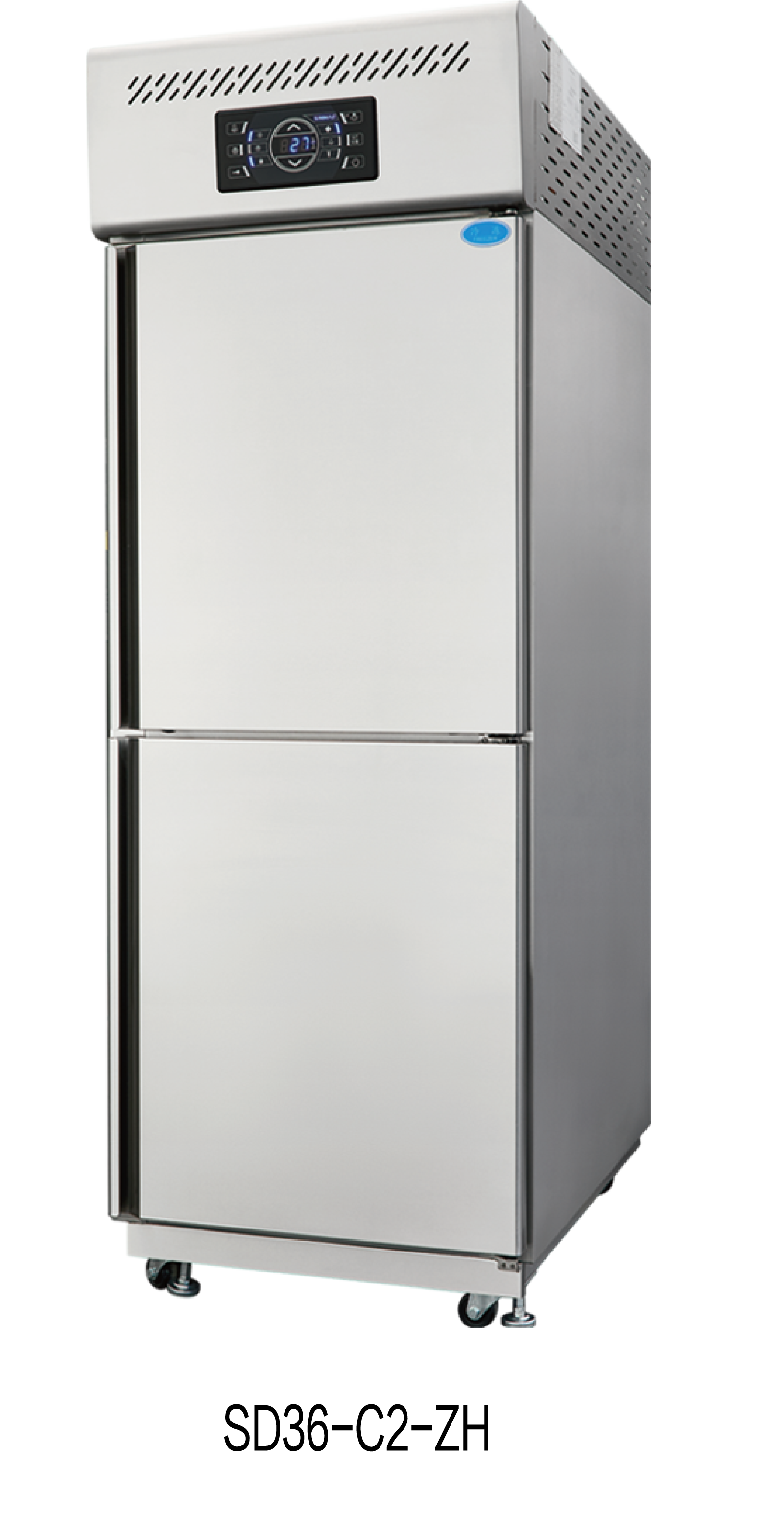 大容量組合用冰箱 ⑴ 可放置18層,共36個烤盤 ⑵ 可根據(jù)門店大小,同醒發(fā)箱,熱風(fēng)爐,插架,儲物柜等自由搭配不同組合,滿足門店的生產(chǎn)需求。